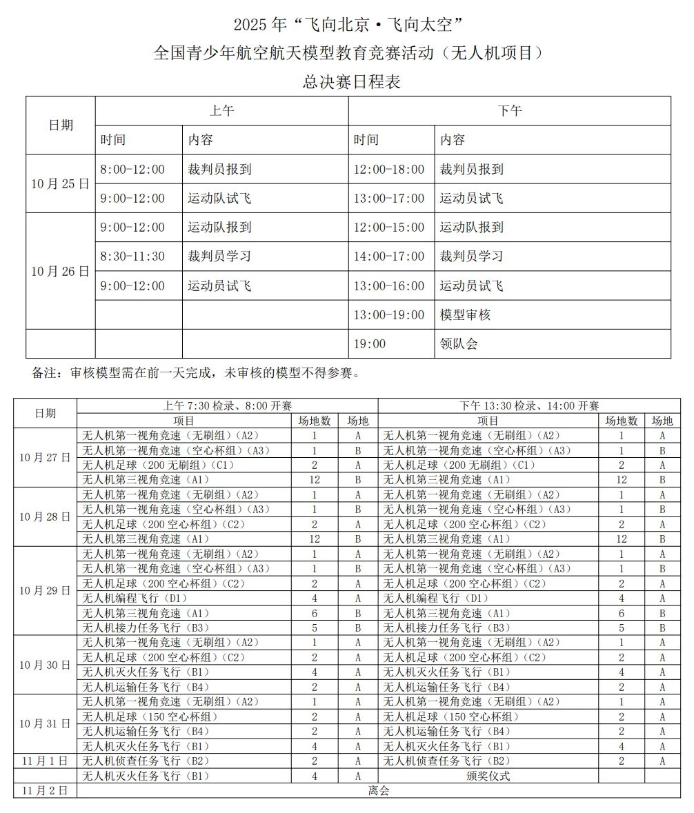 2025年“飞向北京•飞向太空”全国青少年航空航天模型教育竞赛活动(无人机项目)总决赛日程表正式发布