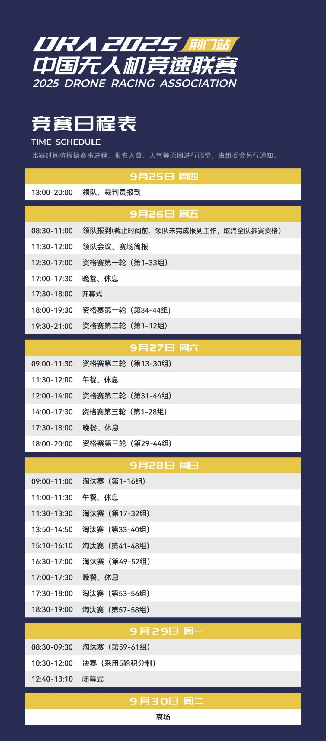 领队必读 | 2025年中国无人机竞速联赛(荆门站)参赛补充通知!